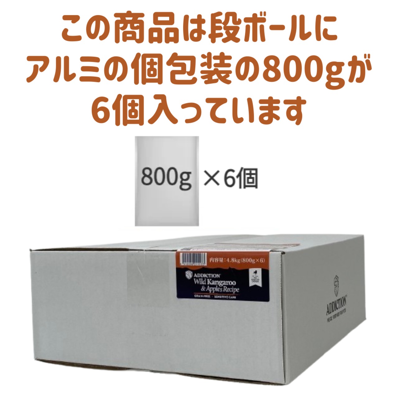 ※こちらのサイズは段ボールにアルミの簡易包装の800gが6個入りの商品です。