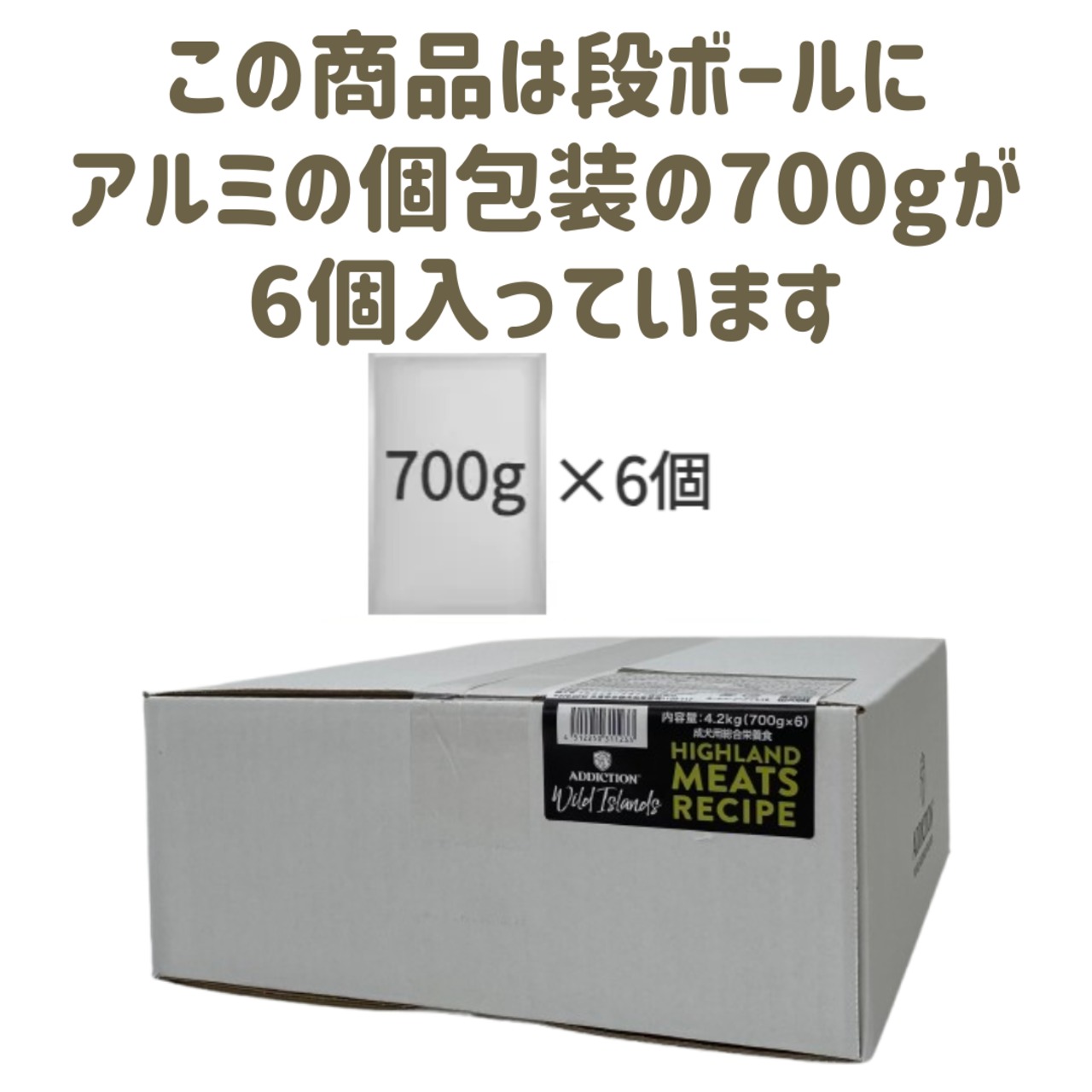 ※こちらのサイズは段ボールにアルミの簡易包装の700gが6個入りの商品です。